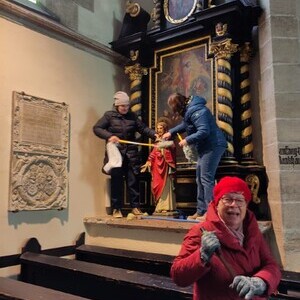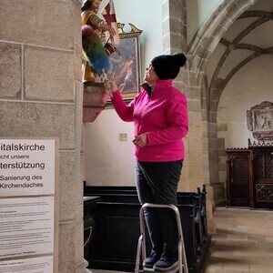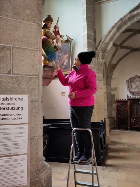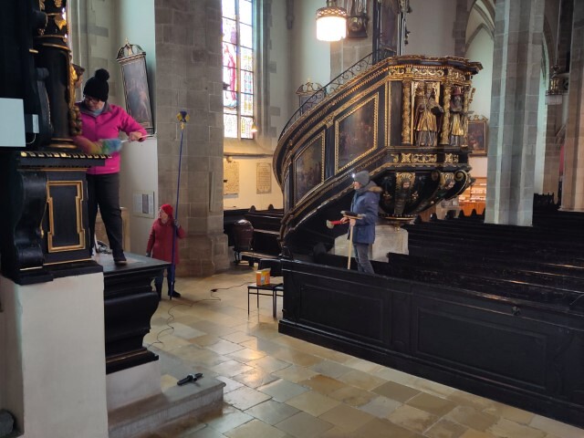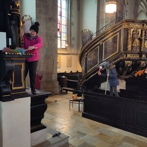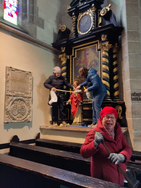 Die Heiligen auf den Altären wurden fast liebevoll umarmt, um vom Staub befreit zu werden, der Pfarrpatron St. Hippolyt wurde entstaubt, die Nase wurde ihm gereinigt.