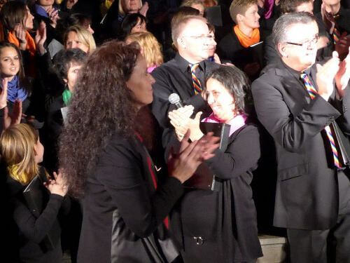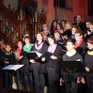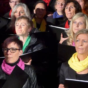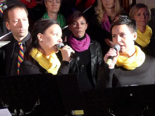 Marienkirche Geng zum Besten gab. Das Ensemble bestand aus 50 SängerInnen der beiden