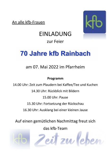 Am Samstag, 7. Mai fand im Pfarrheim die Feier "70 Jahre der kfb Rainbach" statt.