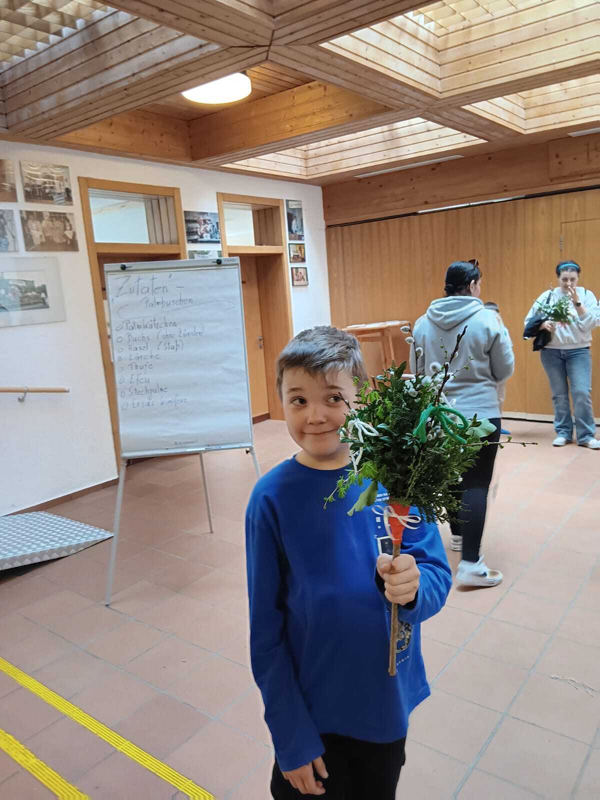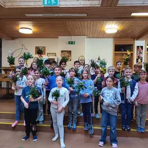 Auch unsere Erstkommunionkinder lernten am 22. März gemeinsam mit interessierten Eltern den schönen Brauch des Palmbuschenbindens kennen.