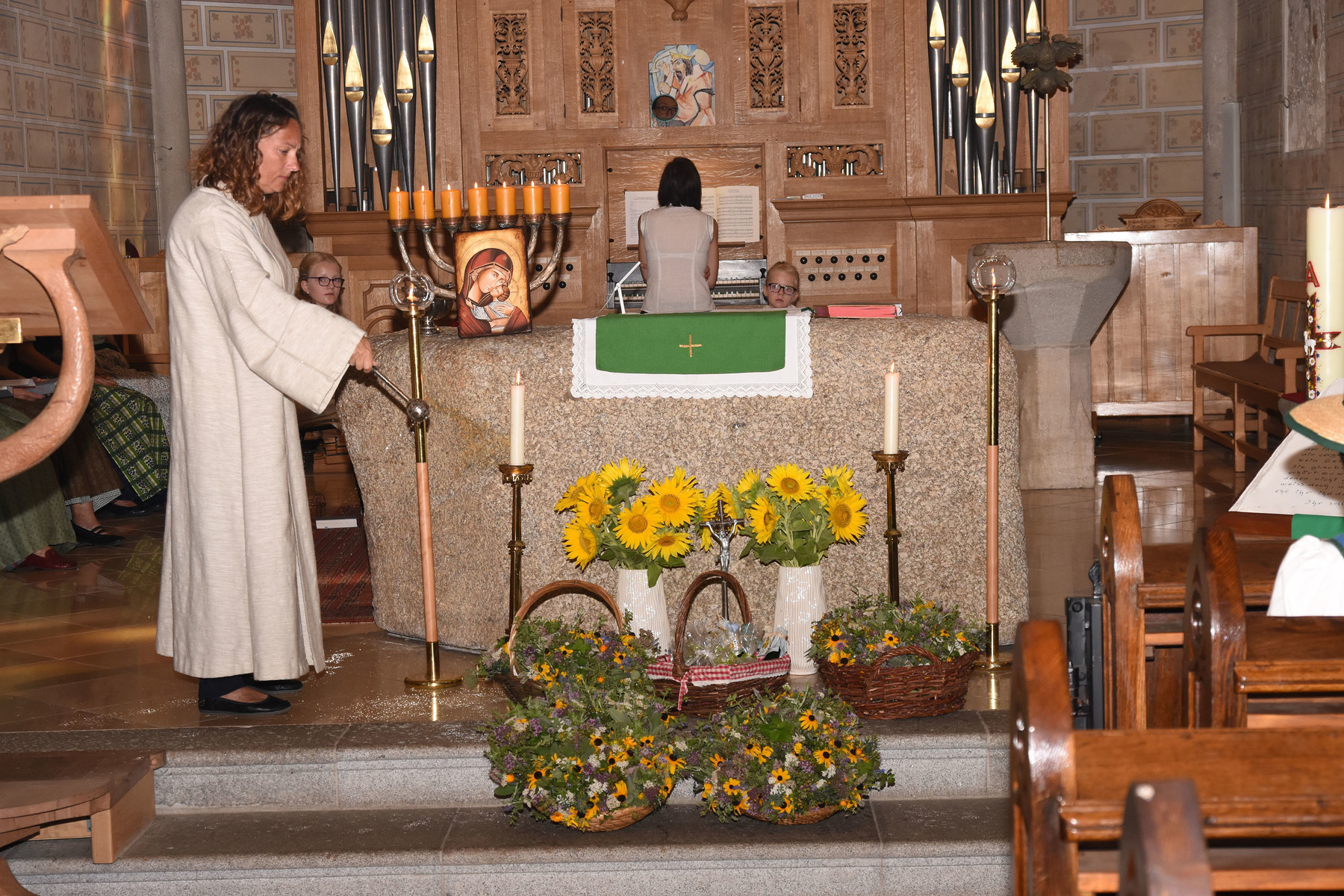 Viele Vorbereitungen unserer Goldhaubenfrauen waren wieder notwendig, um das beliebte religiöse Brauchtum der Kräutersegnung am Hochfest Mariä Aufnahme in den Himmel feiern zu können.
