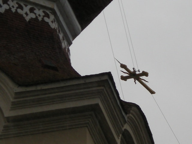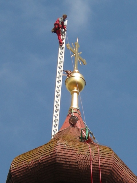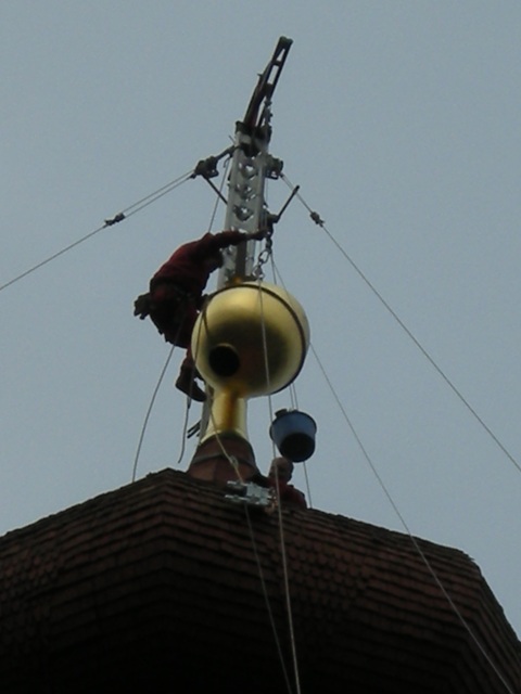 Unter strömenden Regen wurde am Donnerstag, den 9. Juli 2009 das Kreuz sowie die vergoldete Kugel herunter genommen.